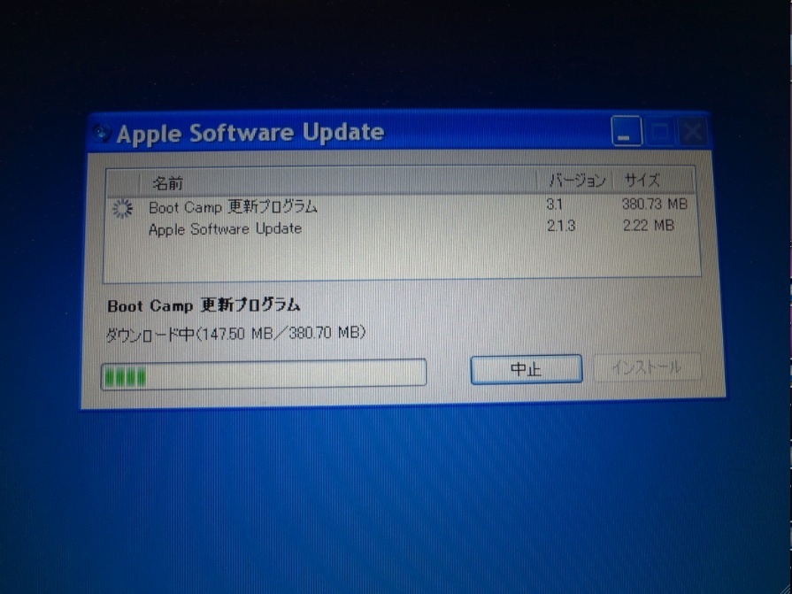 で、いったん終了させて(Boot CampのWindowsXP、
