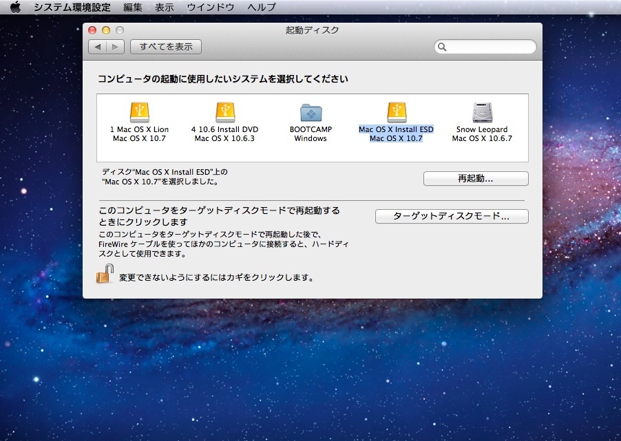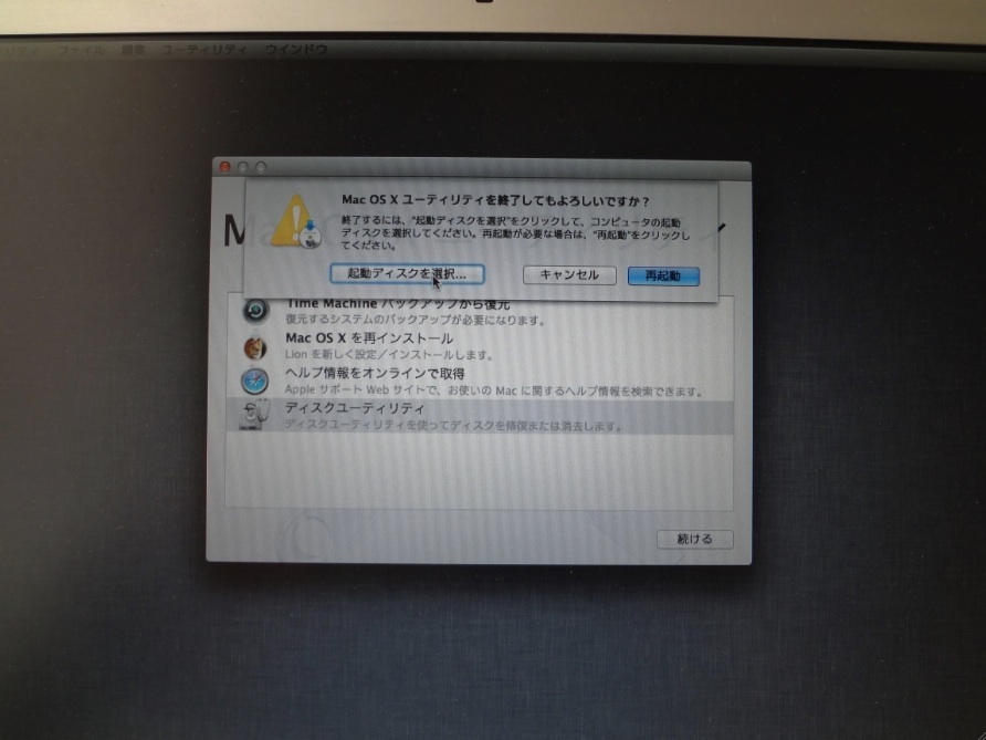起動ディスクを選んで再起動させれば、元のMac OSに戻れます。