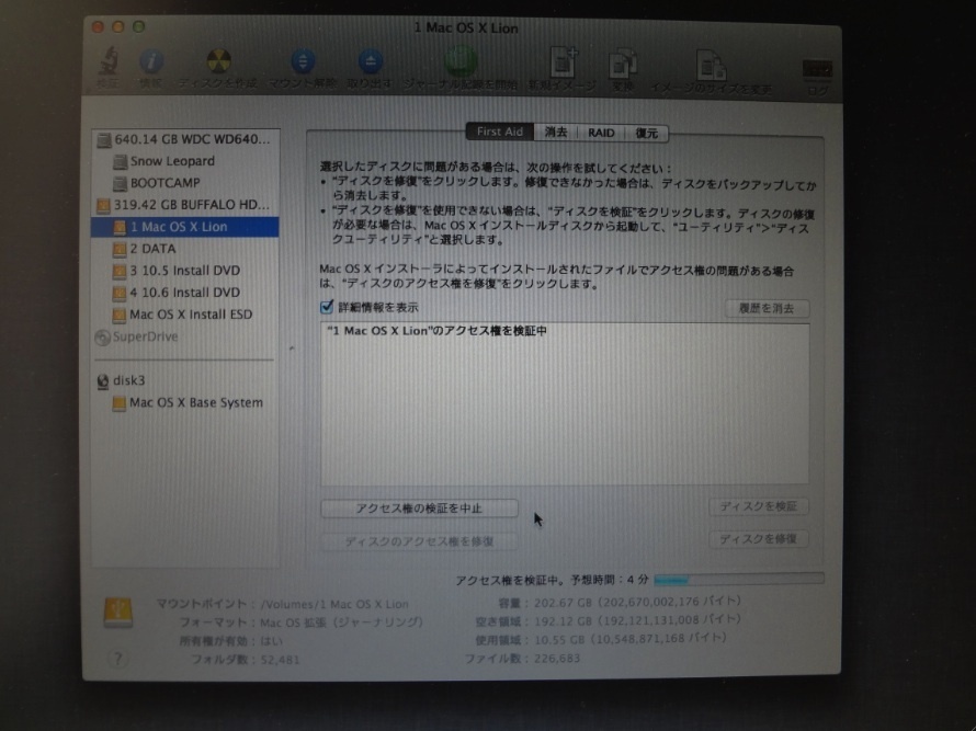 Lionのメンテナンスの[ディスクのアクセス権を検証]とかが出来ます。