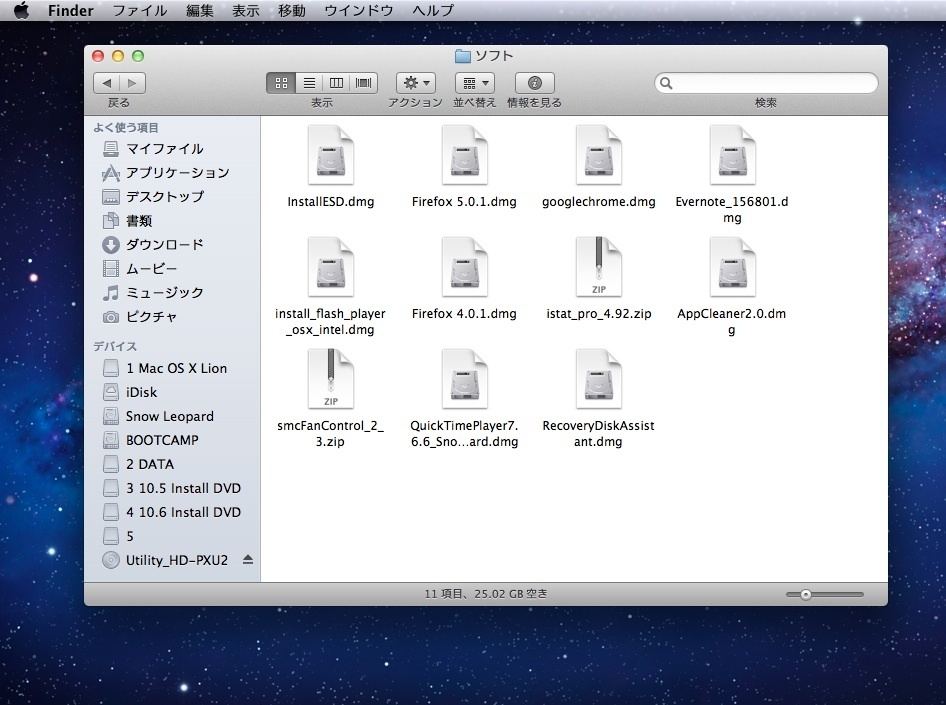 そこにInstallESD.dmgを復元してあって、そこから起動させてますが、