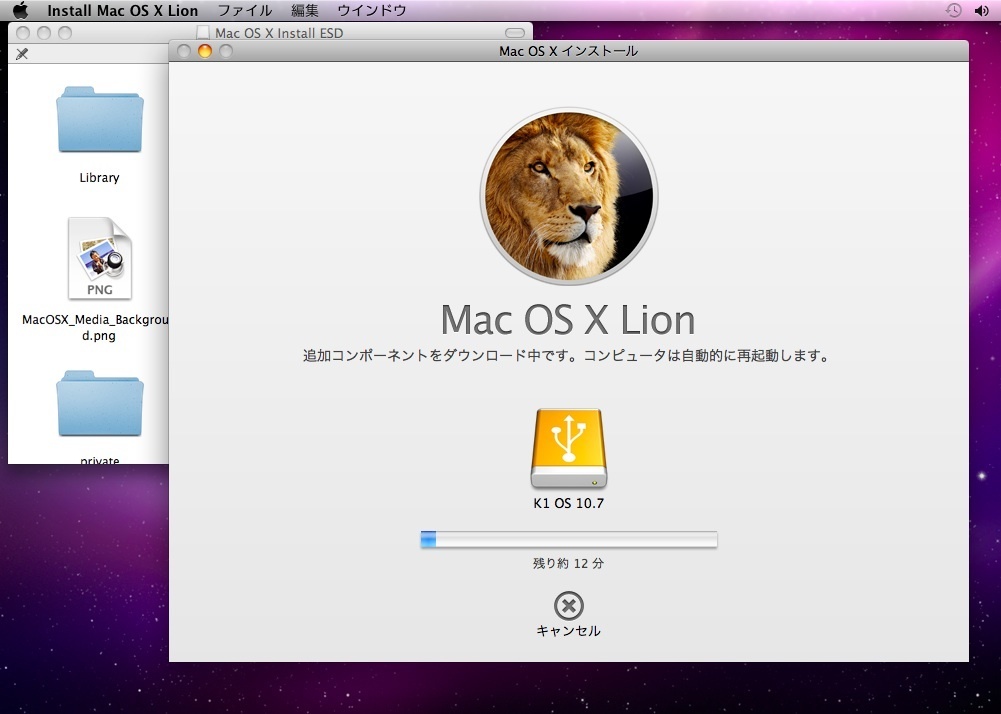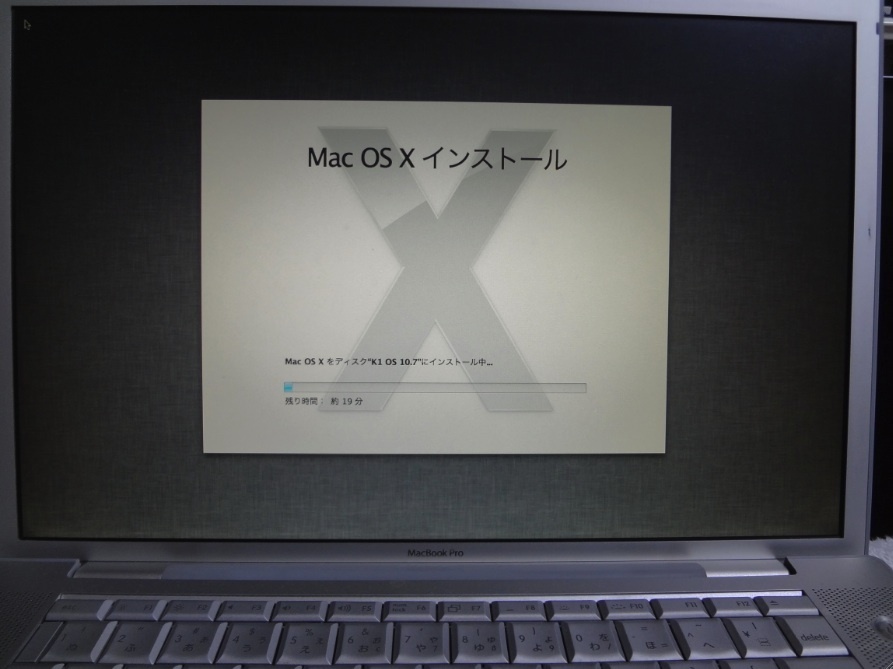 再起動後、この画面で、Lionがインストールされます。