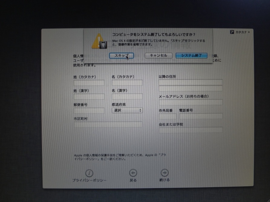 個人情報入力画面は、コマンドキー+Qキーを押すことで、