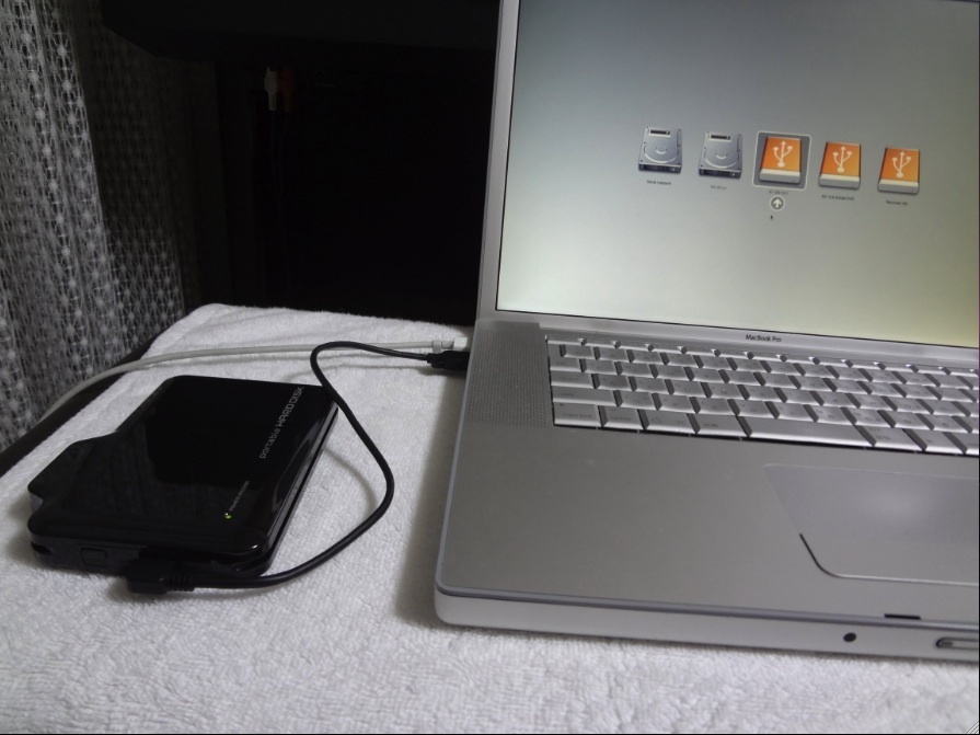 ブラックの方を、MacBook Proにつないで、