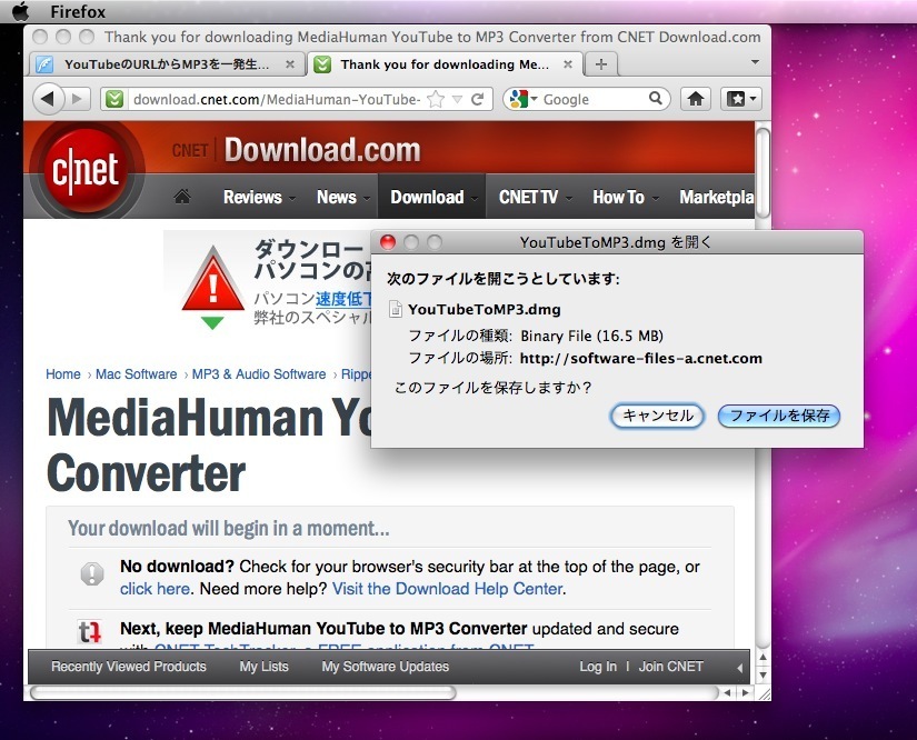 YouTubeToMP3.dmgをダウンロード。