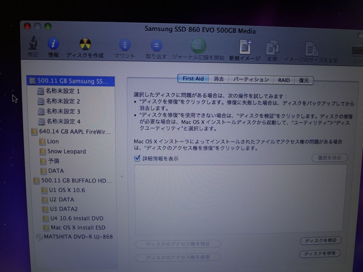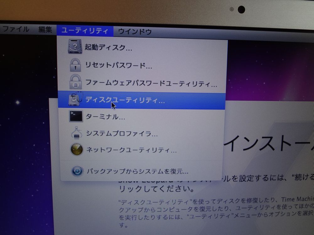 Mac OS のインストールディスクを、バックアップで入れてあるので、