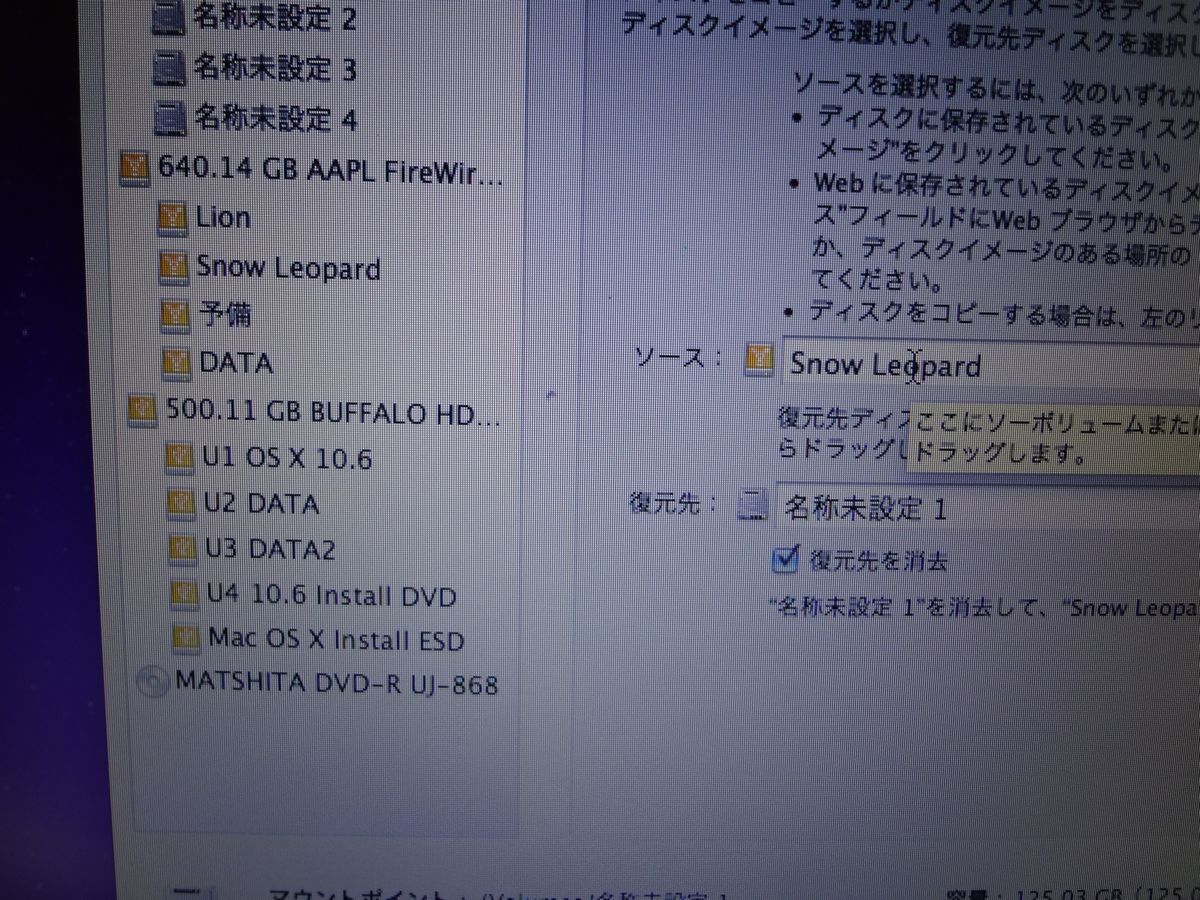 Late 2006モデル の、Snow Leopard をソース(復元元)、
