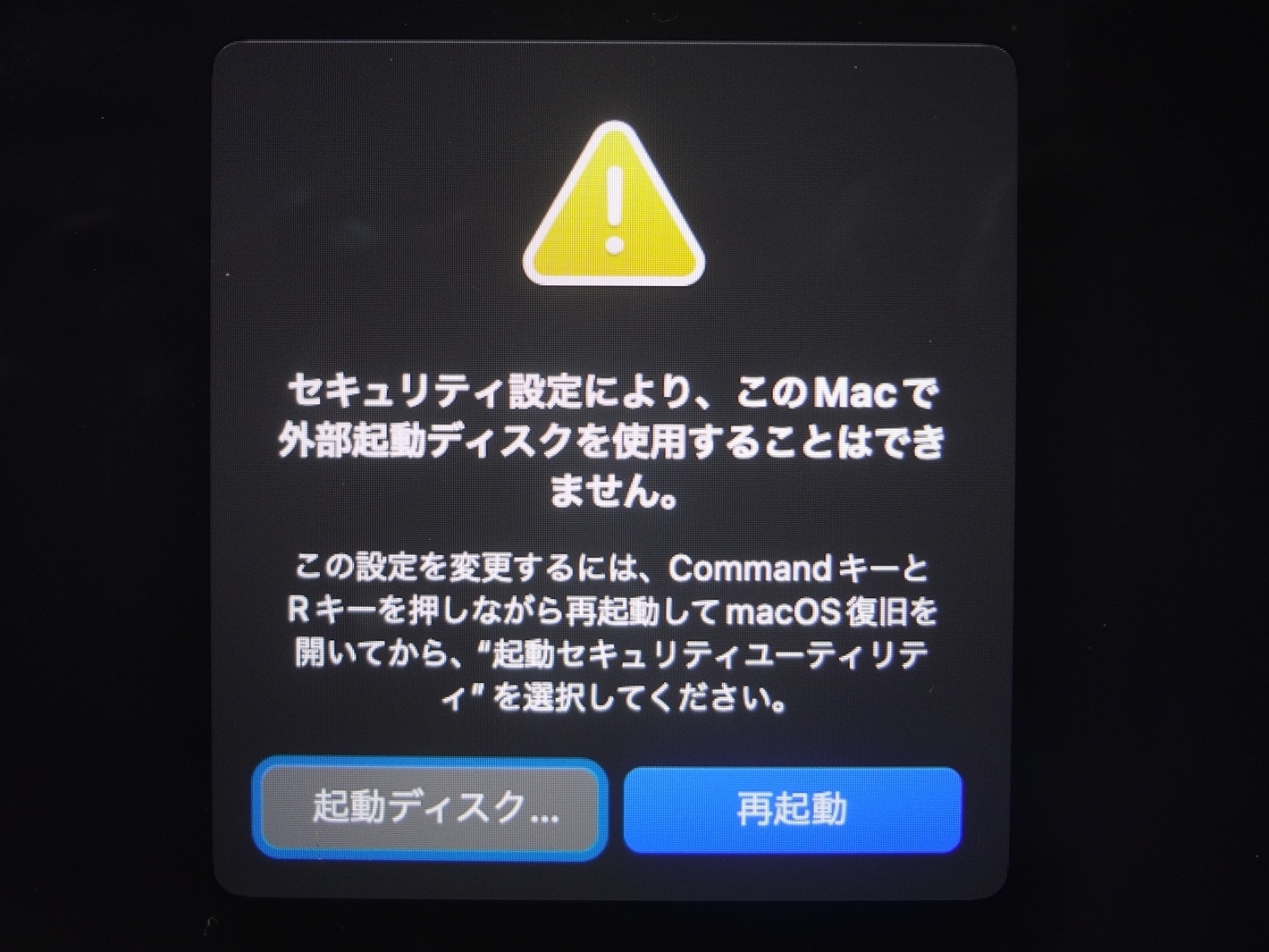 外部起動ディスクを使用することはできません。