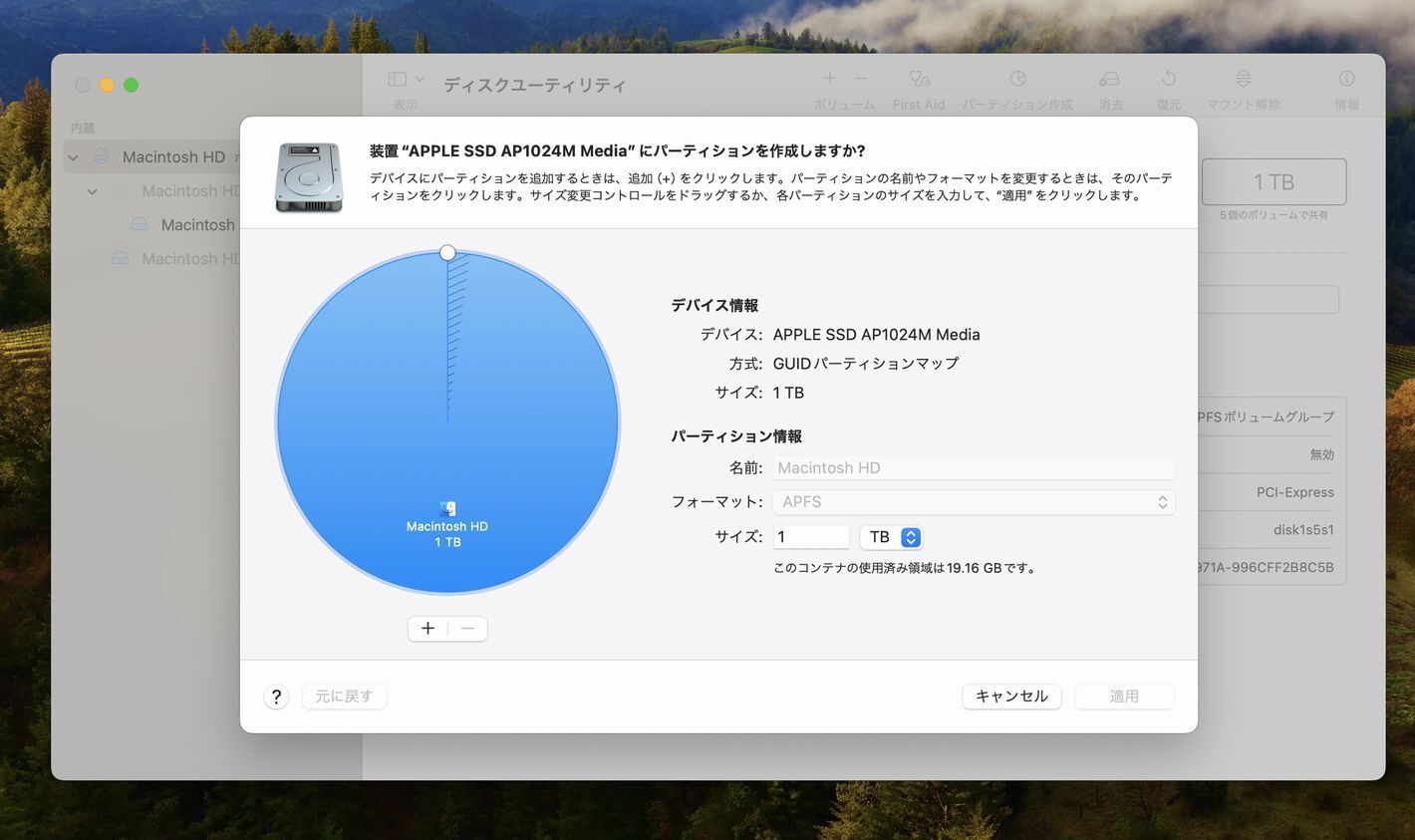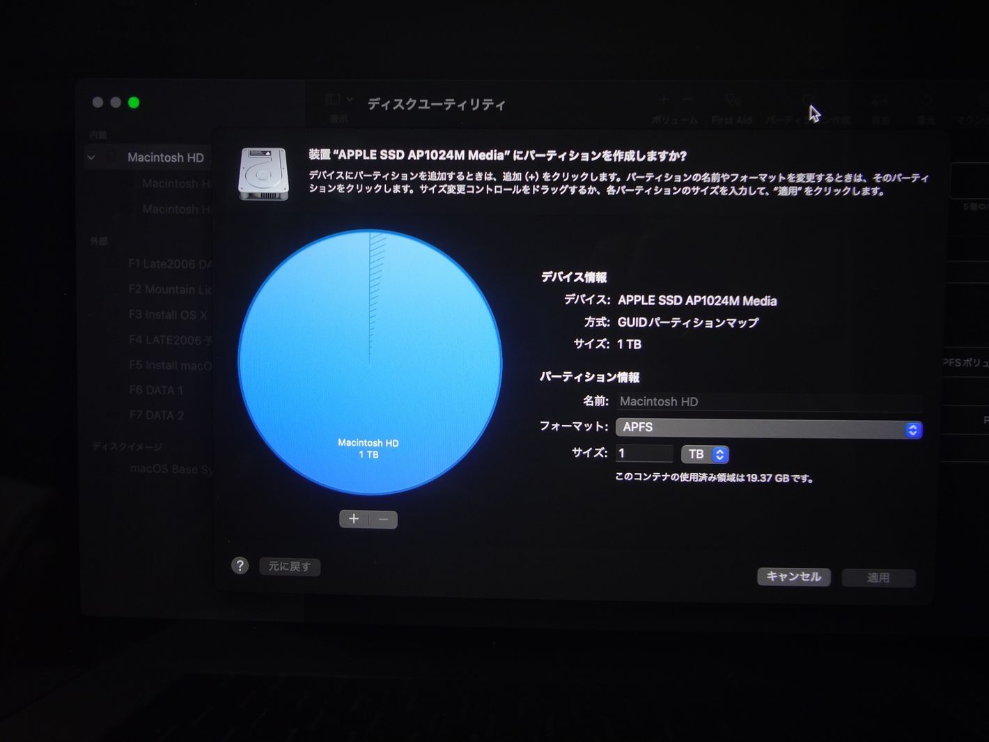 APFSではディスクをパーティションに分割しないでください。