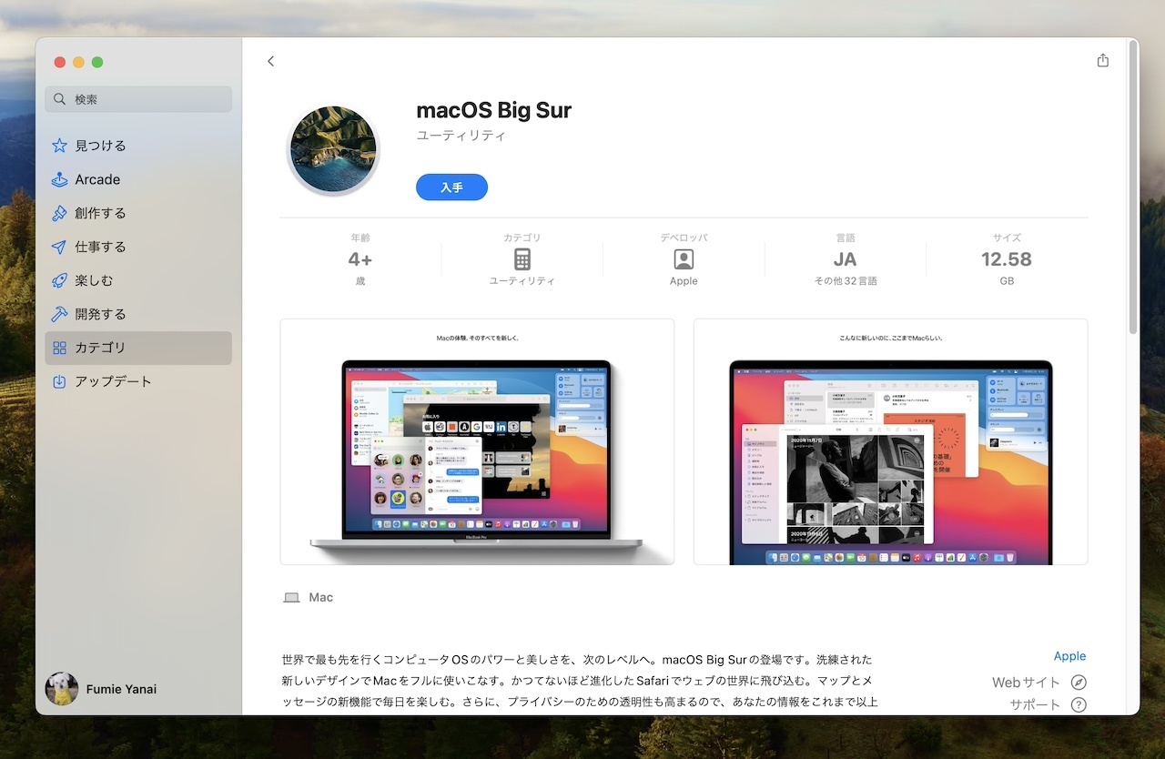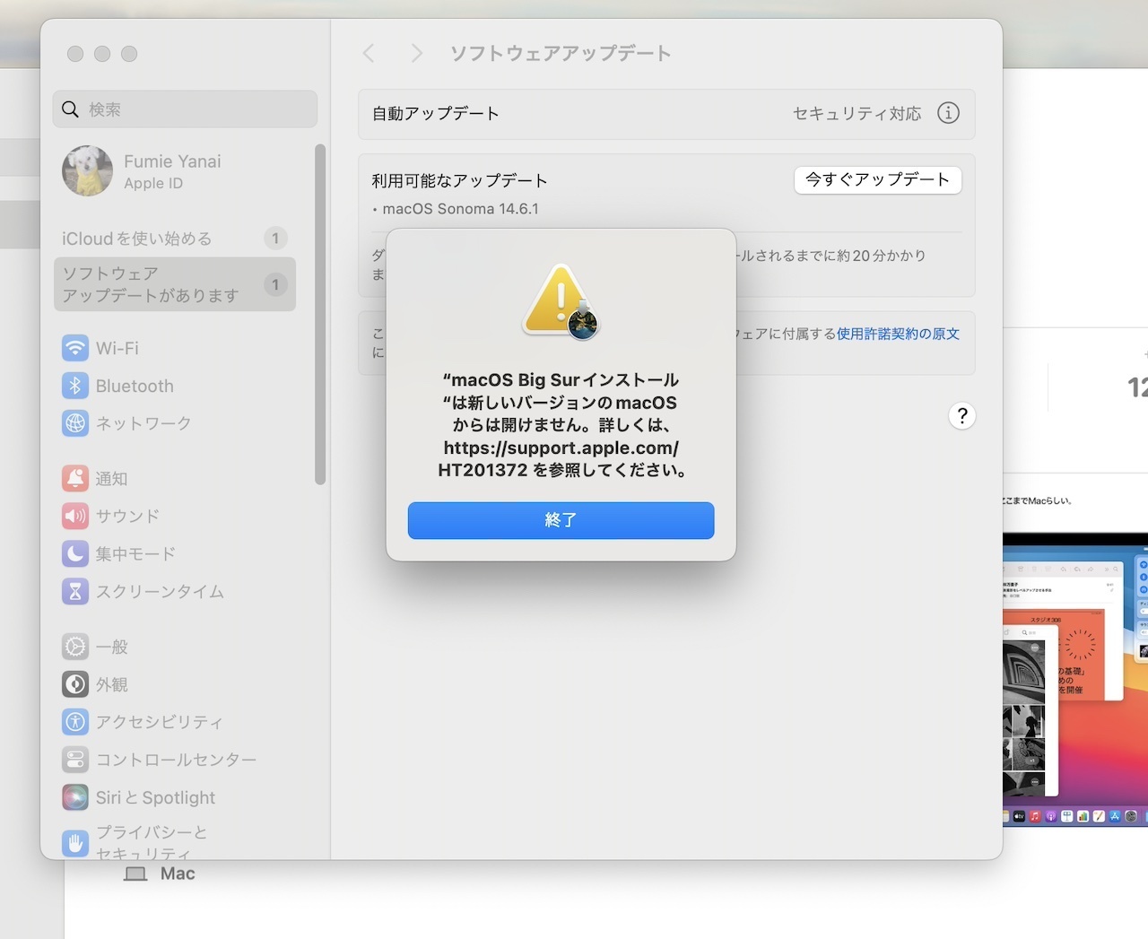 macOS 11 Big Sur をインストールすることはできないので、、、