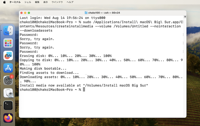 ■ macOS Monterey, Big Sur インストール ISOイメージを作成