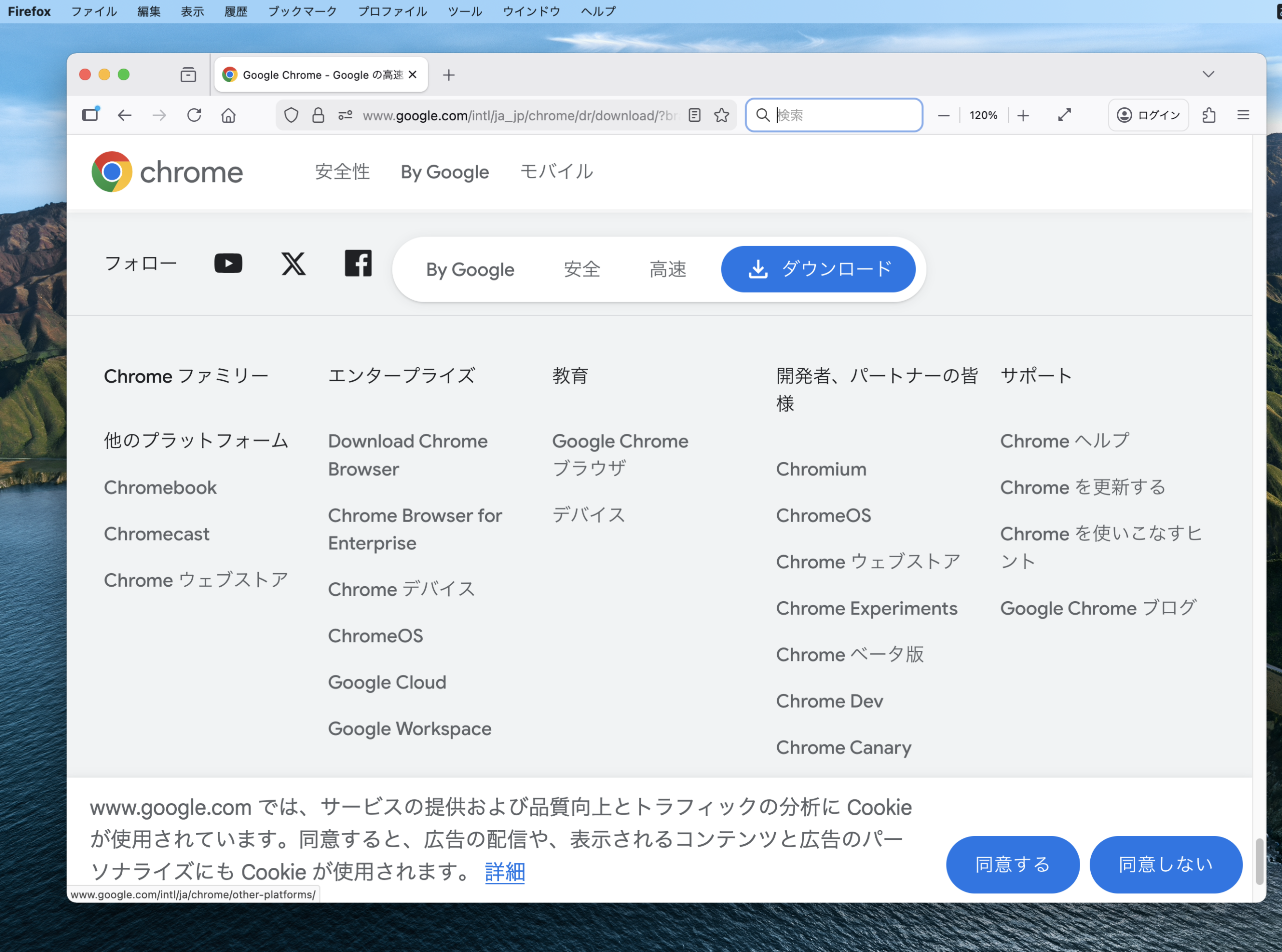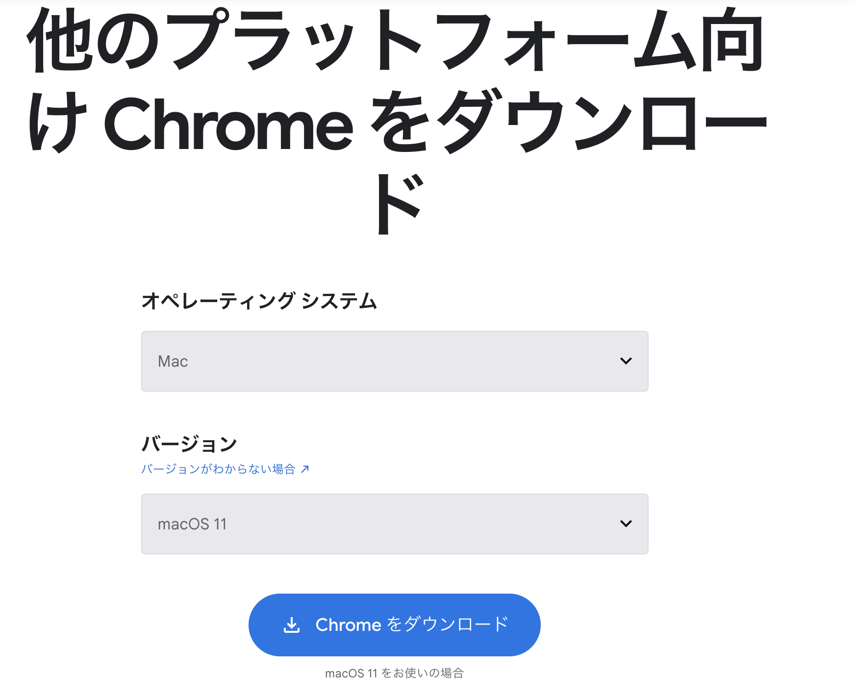 を選択して、Chrome をダウンロード をクリック。