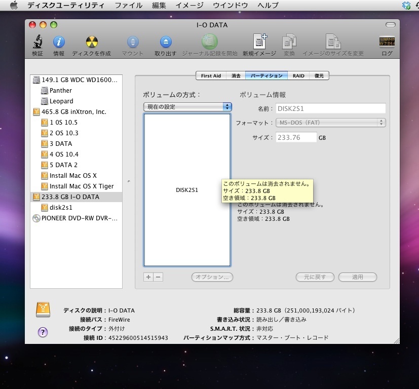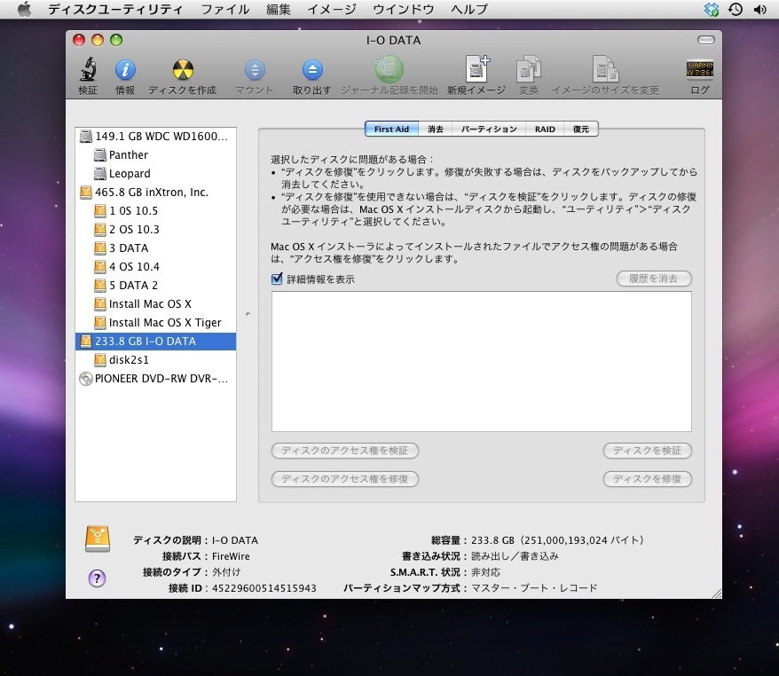 233.8 GB I-O DATAというのが、件の外付けHDDです。