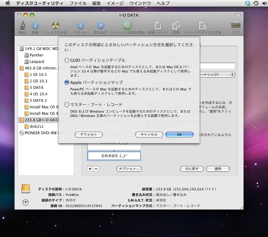 今度はPPC Macの起動ディスク用にフォーマットし直します。