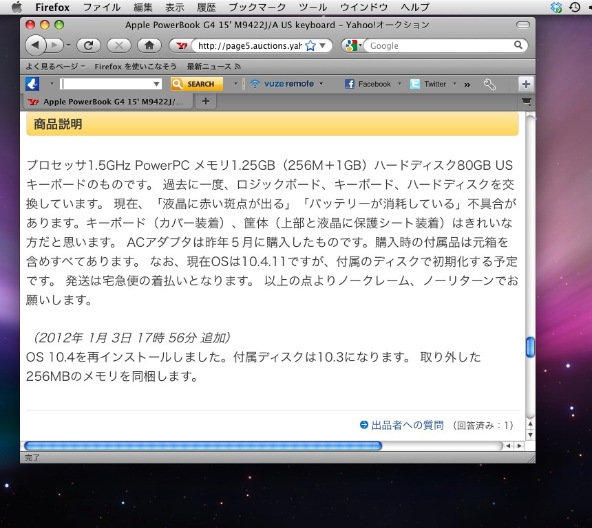 ここひと月ほど、このPowerBook G4のカスタマイズにかまけていました。