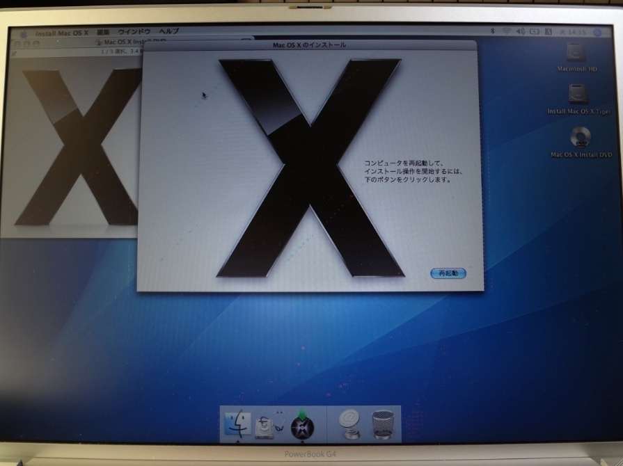 読み込みまでは出来るけど、ここで、再起動ボタン押しても、G4 Macでは、
