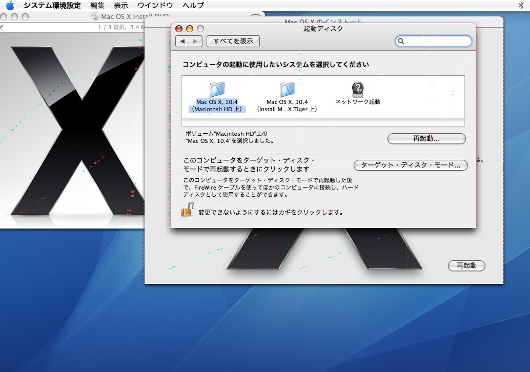 マウントされたMac OS X, 10.5の起動ディスクを選んで、再起動すれば、